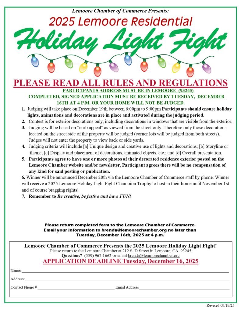 The Christmas Day Parade in Lemoore, California, was a tremendous success, attracting over 5,000 attendees. With more than 70 colorful floats, the parade was a highlight of the holiday season. The event was a collaborative effort between the City of Lemoore and the Lemoore Chamber of Commerce. We extend our heartfelt thanks to all sponsors and attendees, and we look forward to celebrating a bright new year together!